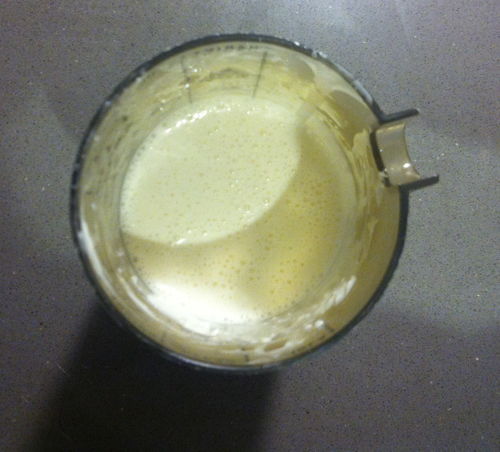 En un recipiente añadimos mayonesa, las lascas de parmesano, la pasta del mortero y un poco de agua, y le damos caña con la batidora. ( Importante: mejor quedarse corto de agua al principio, porque tiene remedio añadiendo más. El caso es que el aliño no quede demasiado suelto 😉 )
