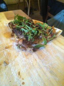 Y he aquí desplegado el contenido de esta bolsa. El sobre de la izquierda contiene el plato principal, el estofado. Con él podemos encontrar otro sobre con polvos para hacernos un batido de cacao y coco, otro con un mix de cacahuetes y nueces, nuggets de mostaza y ajo, gelatina de manzana, la omnipresente crema de cacahuete, una cuchara de plástico, otro sobre para hacernos una bebida de frambuesa, un sobre de tabasco, un pequeño paquete de papel higiénico, dos chicles, toallitas húmedas, un sobre con sal y el sobre más grande y claro que observamos a la derecha, lleno de carburo, que al añadirle unas gotas de agua genera calor, de tal manera que al ponerlo al lado del sobre del estofado lo calentará, sin humos, sin luces, sin fuego…muy táctico.
