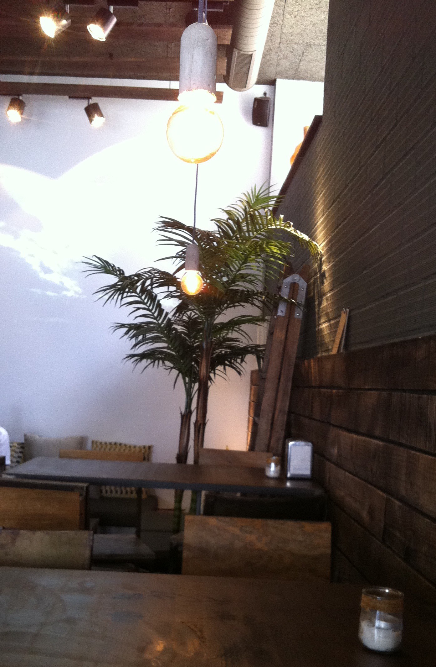 La primera visión que tienes es una puesta en escena de lo mas bucólica, donde se les rinde protagonismo a las jardineras con un collage de flores y un letrero luminoso que anima a querer descubrir un poco mas, y adentrarte en este local tras una gran puerta.