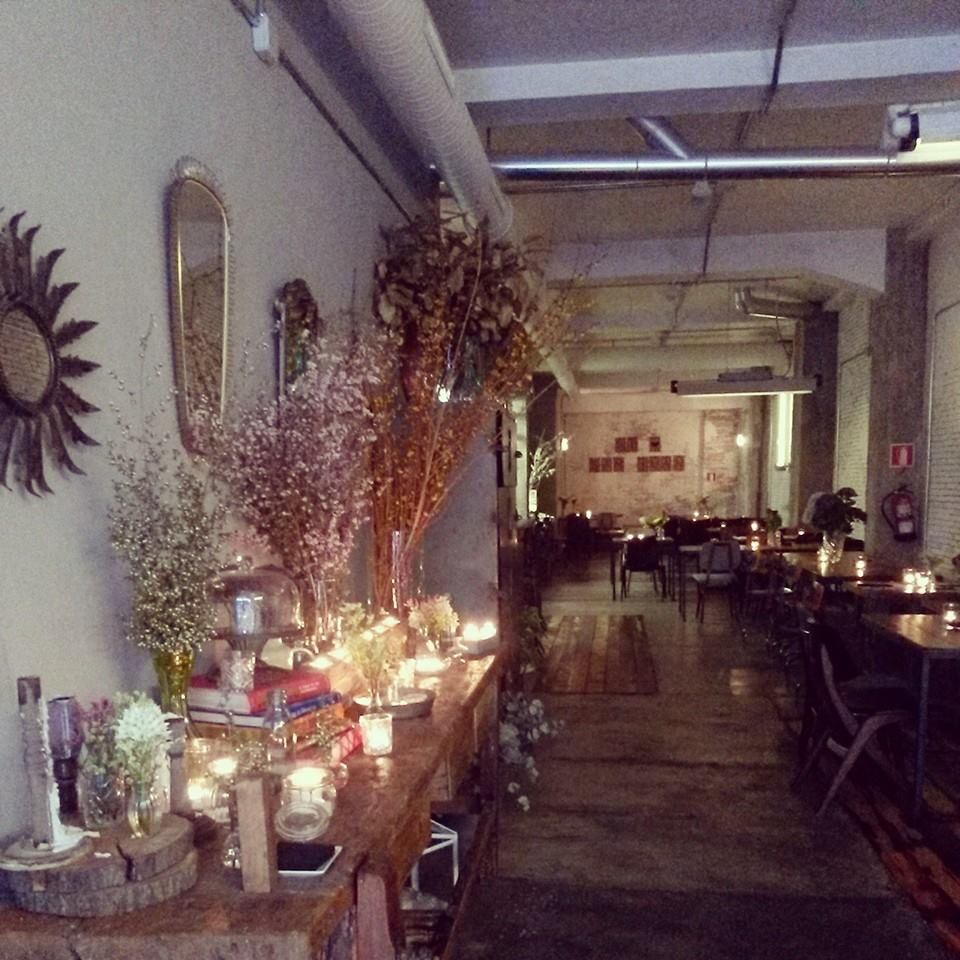 La primera visión que tienes es una puesta en escena de lo mas bucólica, donde se les rinde protagonismo a las jardineras con un collage de flores y un letrero luminoso que anima a querer descubrir un poco mas, y adentrarte en este local tras una gran puerta.