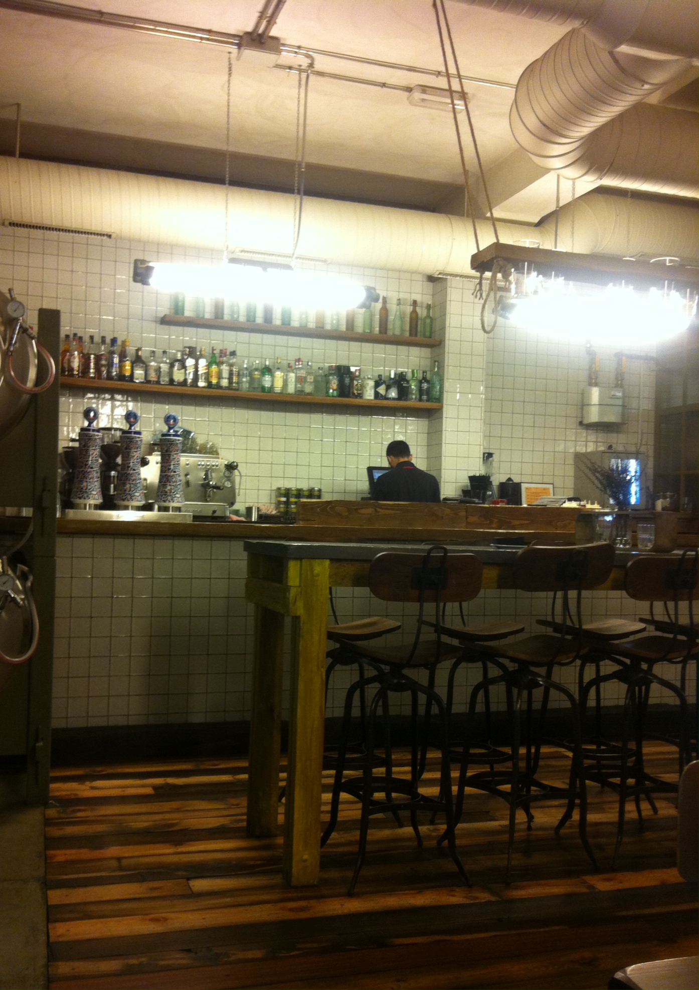Y volvimos a aquel restaurante, al local de look neoyorquino, industrial y dejado, al sitio que nos iba conquistando poco a poco según se sucedían las visitas. Regresamos al lugar de los camareros barbudos en bermudas y chanclas, luciendo coletas y tatuajes, que tan amablemente te convierten en confidente de los secretos escondidos en la carta. Y que hacen gala de una amabilidad y bien hacer que ya quisieran para sí muchos estirados vestidos de negro con pajarita y mandilón.